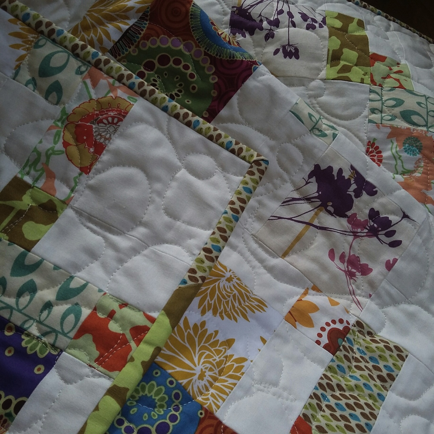 Before I show you what I'm working on right now I want to share pictures of the making of a quilt I finished just before leaving. I couldn't post about this earlier as it was a surprise birthday gift. It's the first quilt I gave away and this was special for me. From the start while selecting the fabrics, colors, and patterns I tried to put myself in the place of the receiving person imagining what she would like. Because of my last minute travel plans I also had to hurry with finishing it and ship it before I left home. So I had only little time with the finished quilt and maybe that was for the best. While I was super satisfied with the result and quite sure she would like it and it would make her happy, I also felt a tiny bit sad to let go of it. Being in a rush prevented me of getting too attached to it.