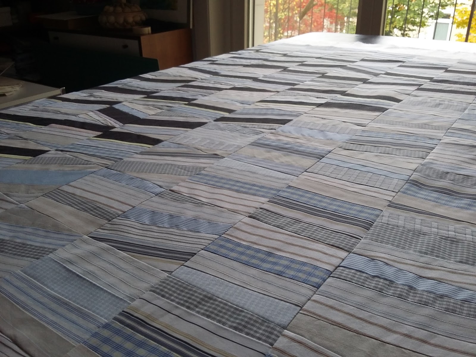 This quilting will keep me busy for days not to speak of all the threads I'll again have to bury. But it just feels great to have a plan and stay focused on the work. Plus these shirt fabrics are so soft that it is a real treat to have my hands full of them.