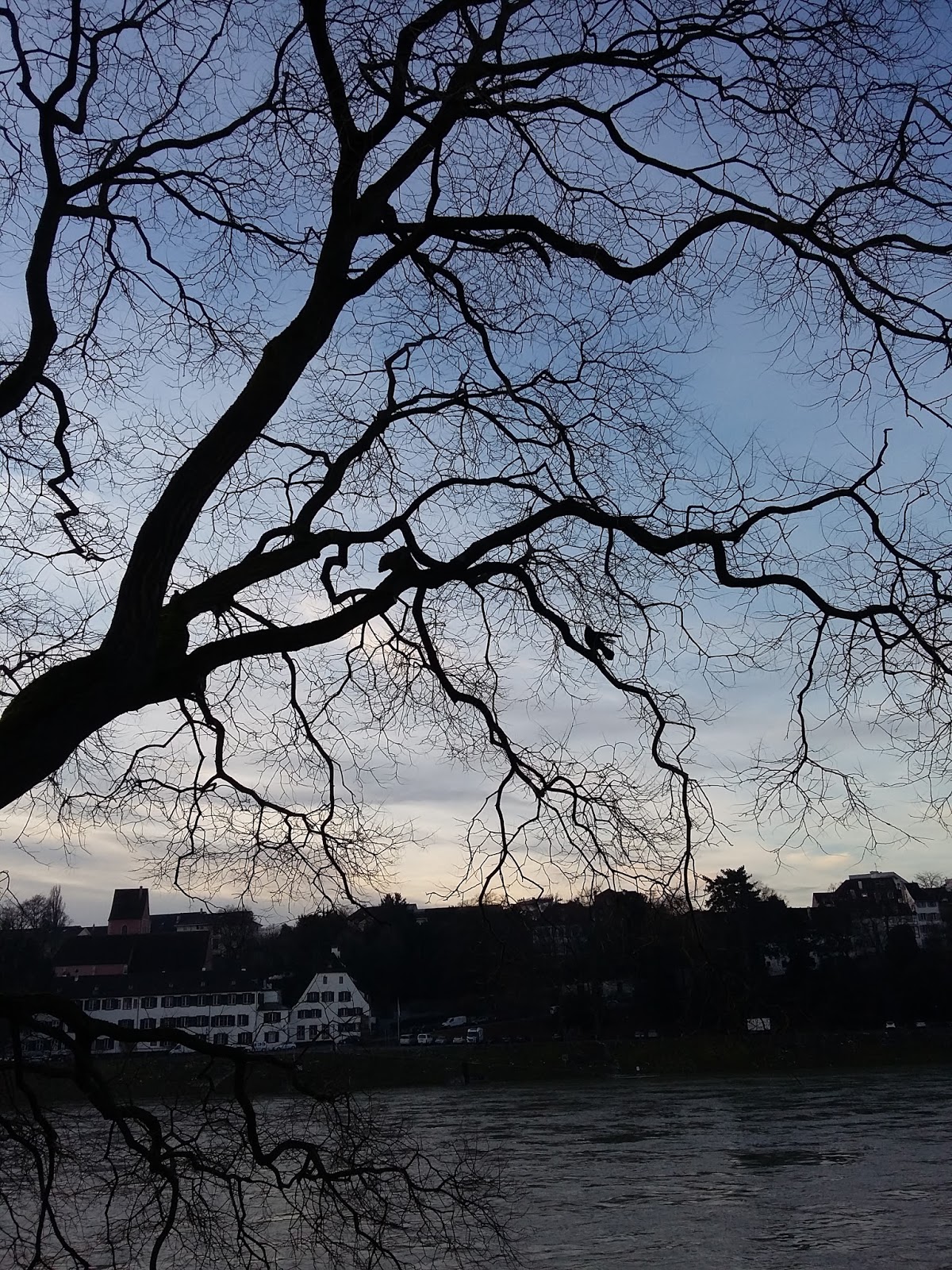 I've said it before. I have a favorite tree. It sits at the border of the river Rhine along my running track. Last time a bird was sitting on it and I got a little jealous. Must be nice up there.